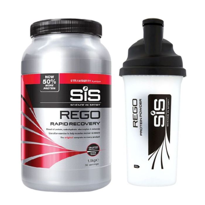 Recupera le forze con Rego Rapid Recovery e lo Shaker Sis! Rego Rapid Recovery, l'originale prodotto di recupero completo in un piccolo e conveniente barattolo da 1,6 gr. Una miscela di proteine, carboidrati, elettroliti e minerali. Da utilizzare subito dopo l'esercizio per favorire il recupero e la ricostruzione dei muscoli. Dose consigliata è di 50gr, circa 3 misurini.