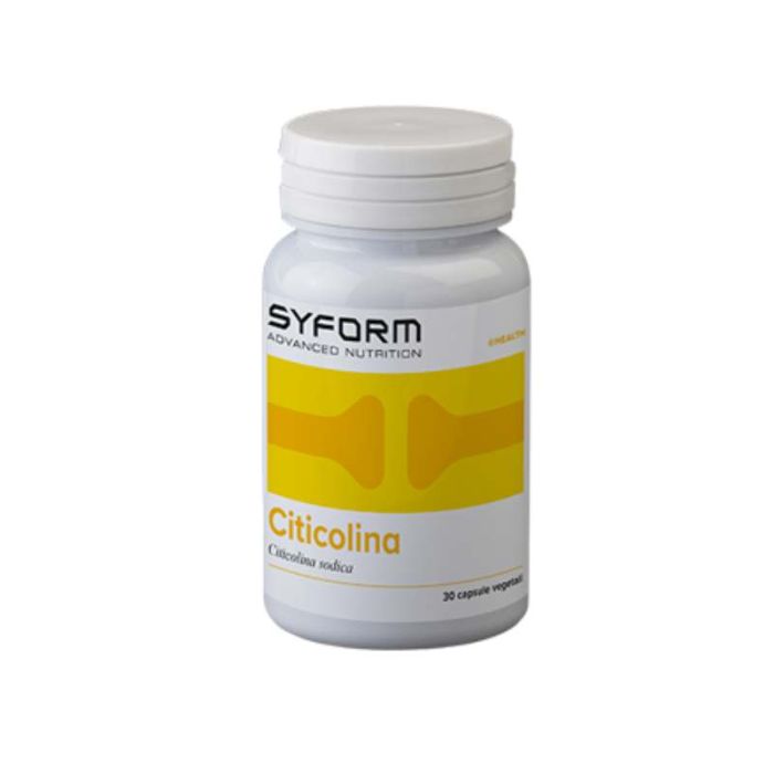 Syform Citicolina 30 capsule. Indicata per sostenere le funzioni cognitive, la memoria e la concentrazione mentale. La citicolina è un ingrediente salutare ottenuto per biofermentazione, sicuro, adatto ai vegetariani e privo di allergeni. Citicolina o CDP (colina citidina-5’-difosfato) è una sostanza presente nell’organismo, molto abbondante nelle cellule del cervello. La citicolina funge infatti da substrato per la produzione di acetilcolina, uno tra i principali neurotrasmettitori in grado di favorire la memoria e la concentrazione. La citicolina, inoltre, è in grado di promuovere la sintesi dei fosfolipidi e della lecitina, e di incrementare il flusso ematico cerebrale, potendo essere impiegata come neuroprotettore. La disponibilità di citicolina si rivela indispensabile anche per l’integrità della vista.